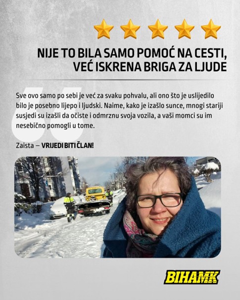 Povjerenje naših članova najveća nam je potvrda da radimo dobar posao. Tako nam se u januaru javila naša članica Dragana koja je pohvalila rad naše ekipe, u trenutku kada joj se činilo da neće lako dobiti traženu pomoć. Dva sata je pokušavala izvući svoj auto iz snijega, a onda je pozvala 1282 i vrlo brzo naša ekipa je bila na licu mjesta. BIHAMK je tu kad vam je najpotrebnije – brzo i sigurno.